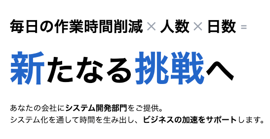 システム化を通して時間を生み出し、ビジネスの加速をサポートします。