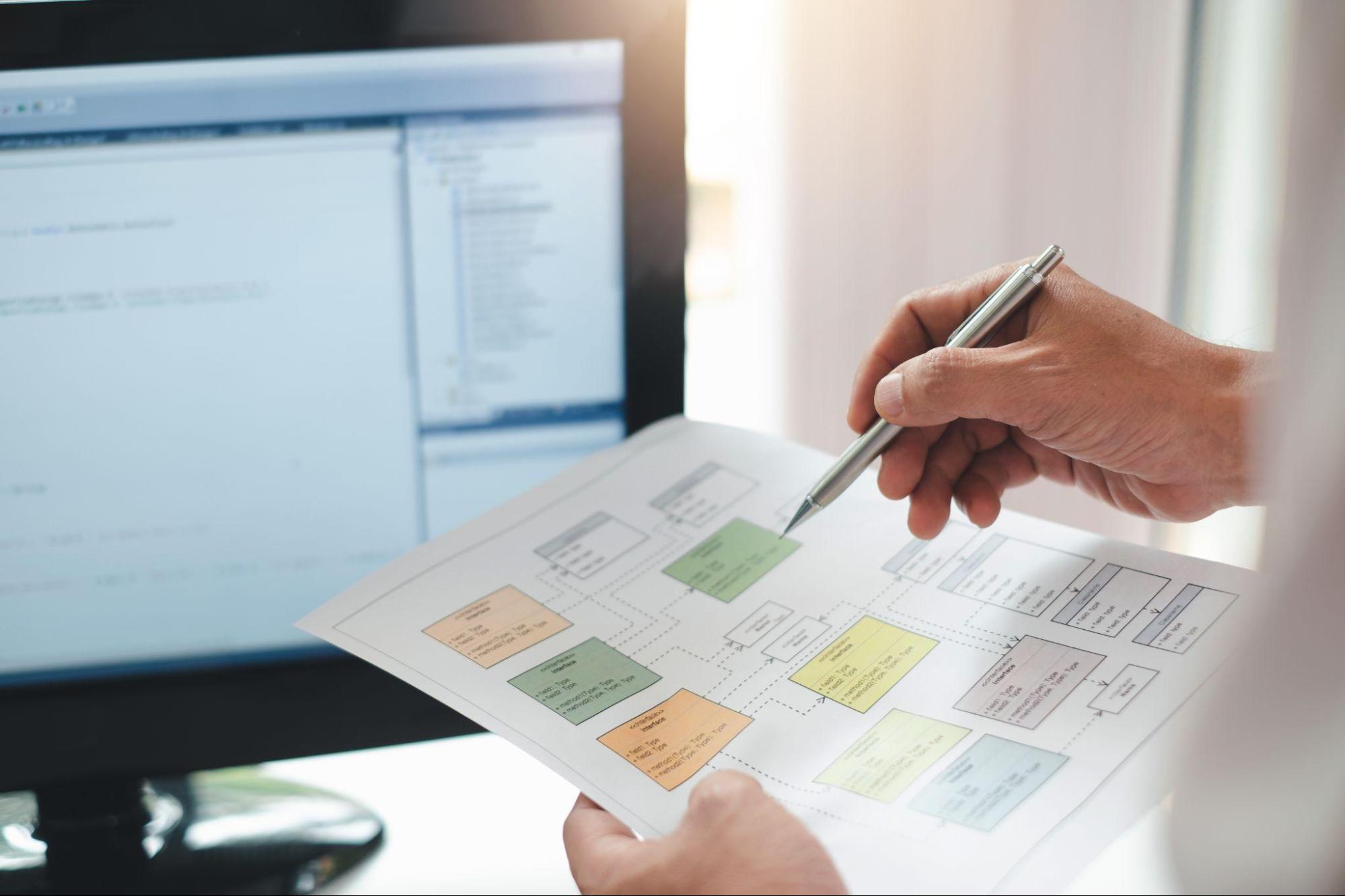 詳細設計では、プログラマーが実際に作れるよう、内部の細かい仕組みまで決めます。データをどう保存するか、計算方法はどうするかなど、技術的な詳細を設計書にまとめます。